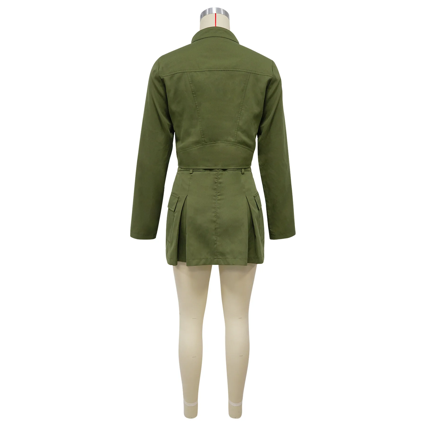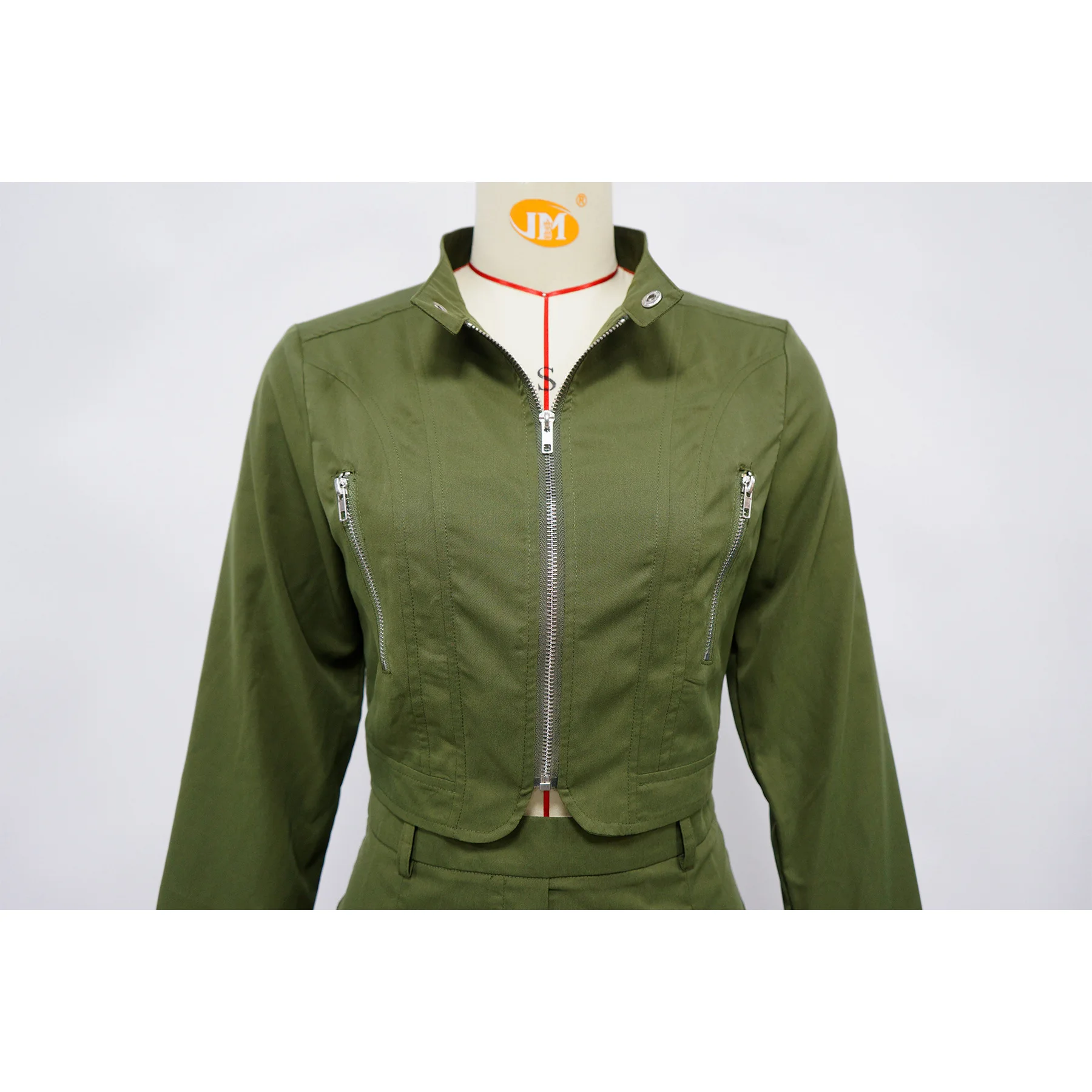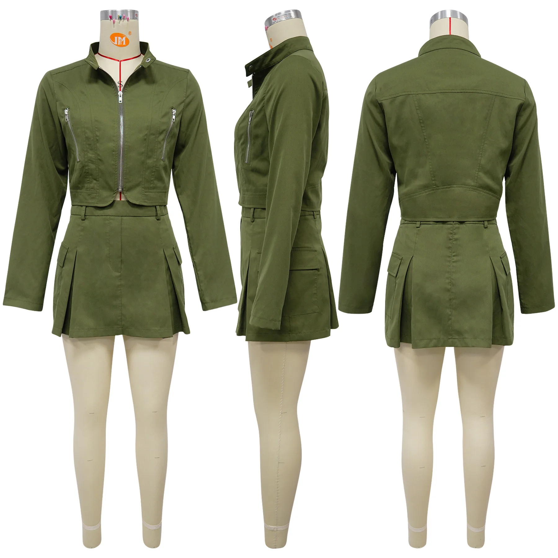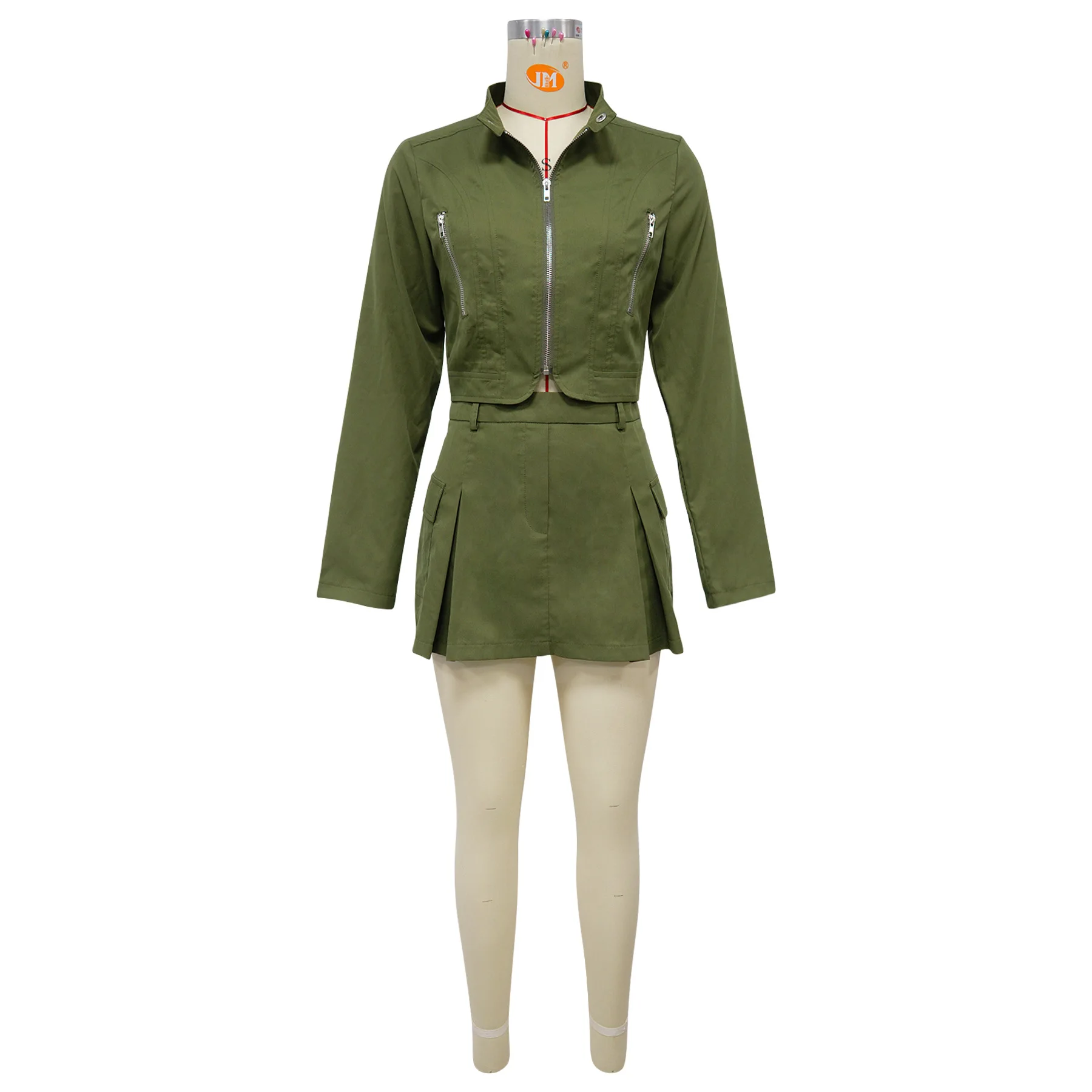 Casual Zipper Jacket Top + Pleated Skirt Set