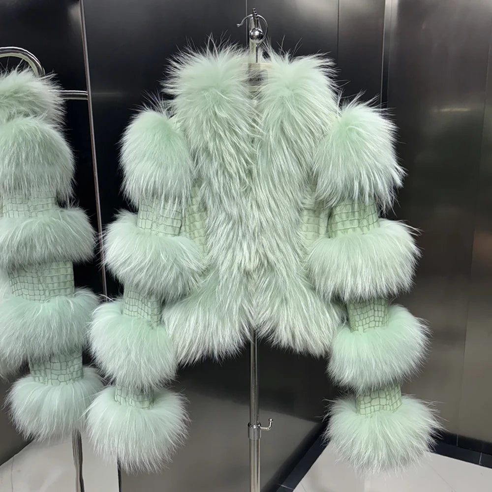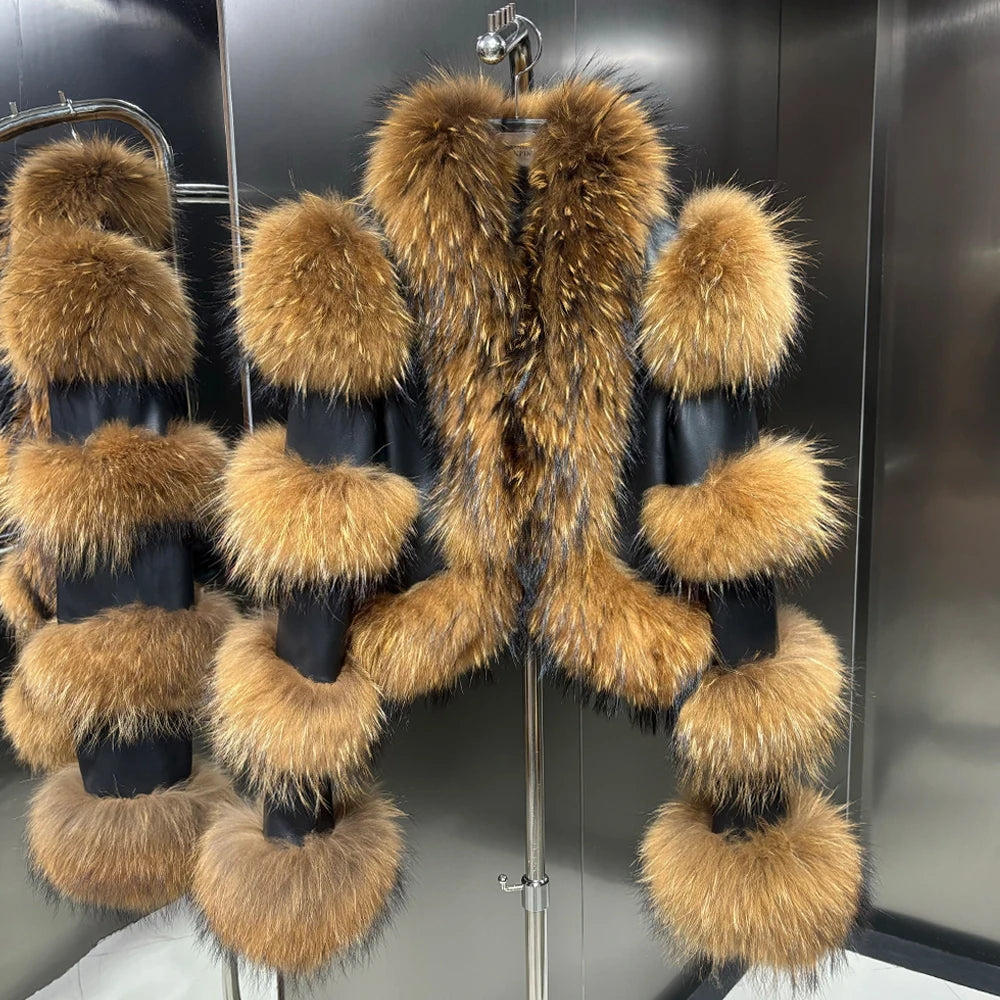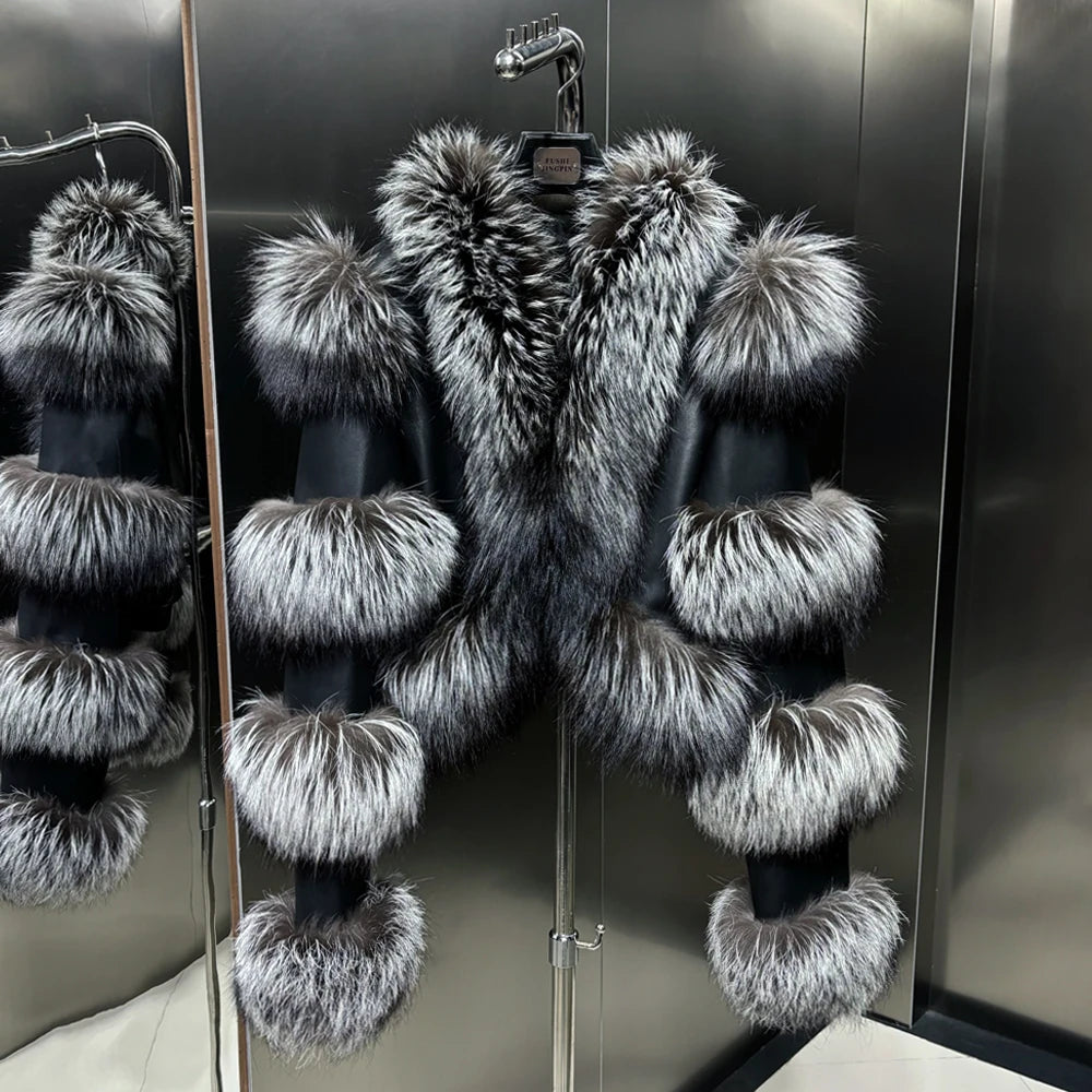 Featuring natural fox fur decoration, this jacket adds a touch of elegance and warmth for the autumn/winter season.