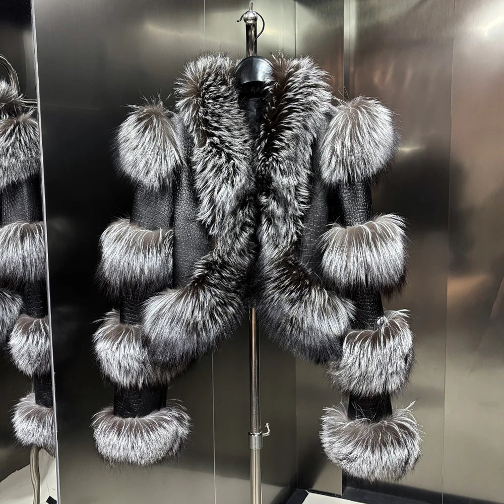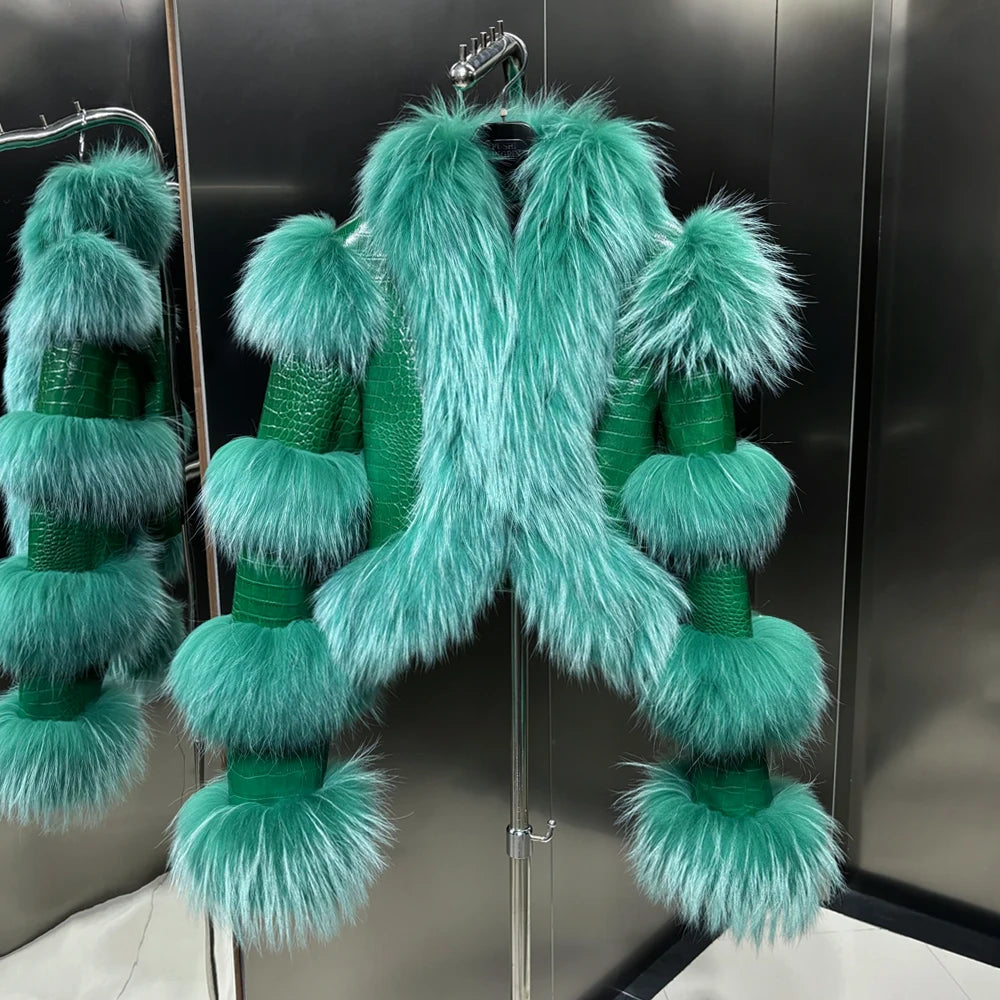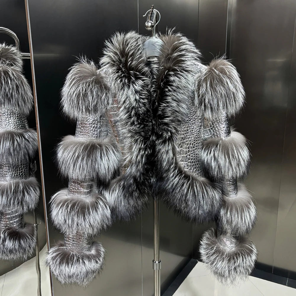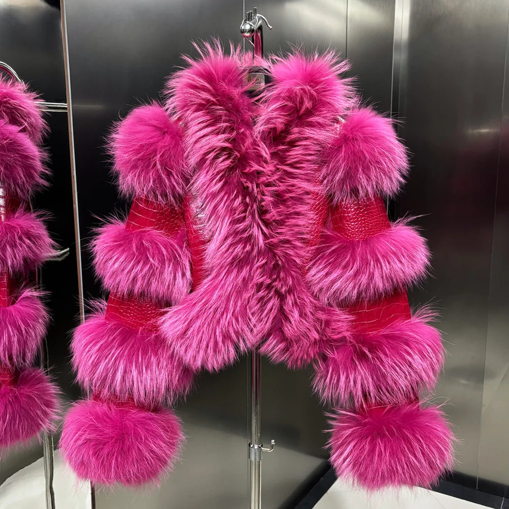 Unleash your wild side with this audacious crocodile leather cropped jacket. Crafted from genuine crocodile hide, this statement piece delivers uncompromising edge and luxury in one fearless silhouette. The cropped cut showcases your confidence while the rich texture and natural scale pattern command attention.