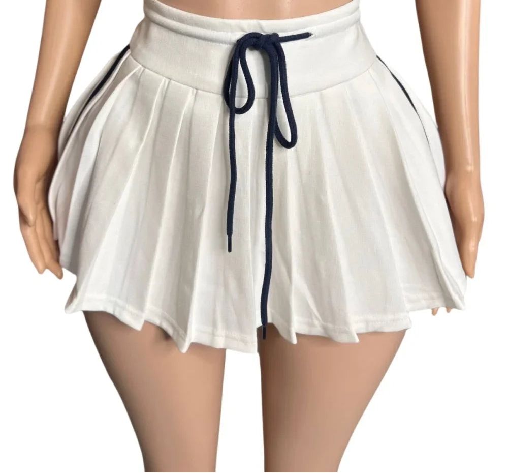Solid Color Top Pleated Mini Skirt Set