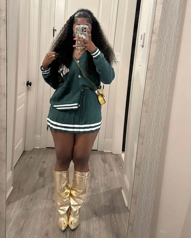 Make a bold statement with this Knit Stripe Two-Piece Set, featuring a striking cardigan top and a dynamic pleated skirt. The vivid stripes command attention, while the knit fabric hugs your silhouette with confident ease. Perfect for those who dare to blend edgy style with refined elegance, this set transforms any occasion into a runway moment. Embrace movement and attitude with the flowing pleats and sharp lines of this fearless ensemble.