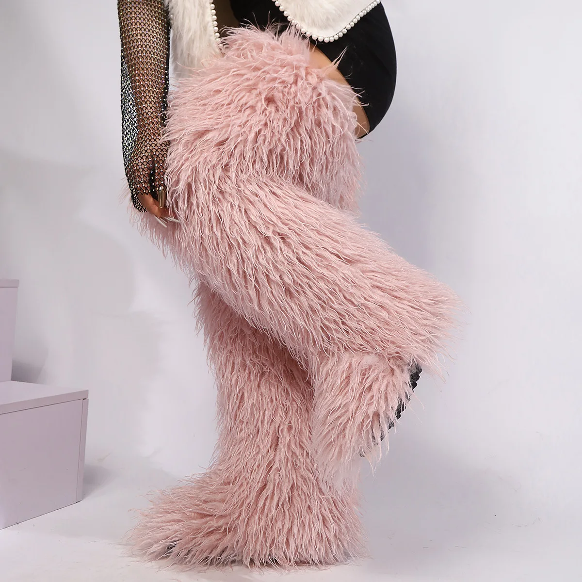 Step out boldly in these Over The Knee-High Fur Boots that command attention with every stride. Designed to elevate your style, their plush fur lining keeps you warm while making a striking statement. Perfect for those who dare to stand out, these boots blend fierce fashion with cozy comfort effortlessly.