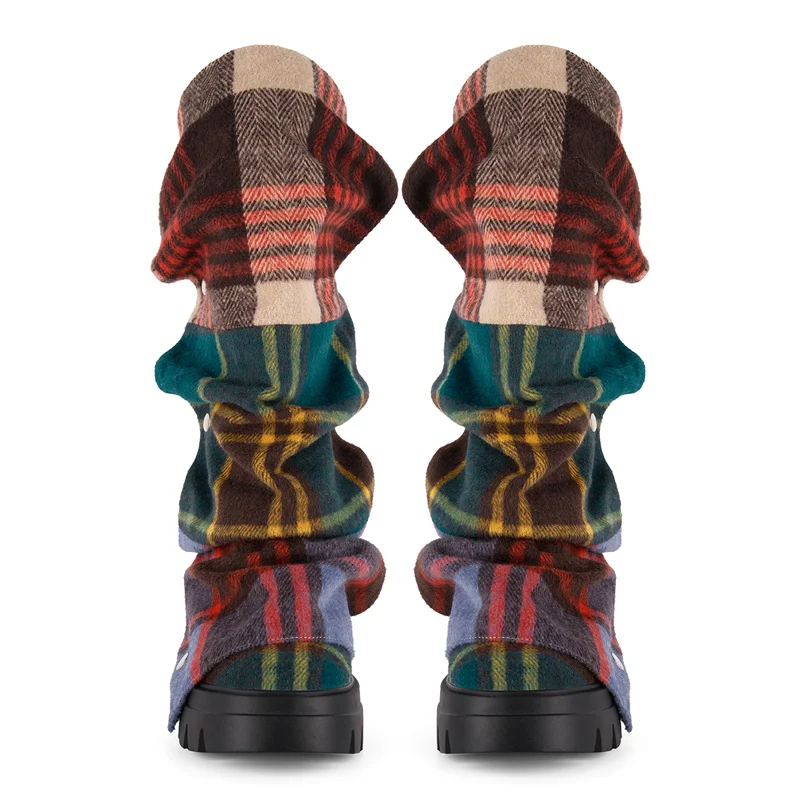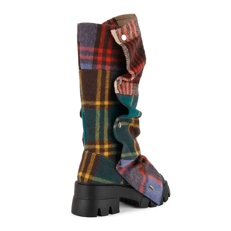 Make a bold statement with these plaid platform block heel pull-on boots. The striking plaid design commands attention while the chunky block heel and platform sole give you the confidence to own any room. Slip them on without breaking stride—no laces, no delays, just instant edge.