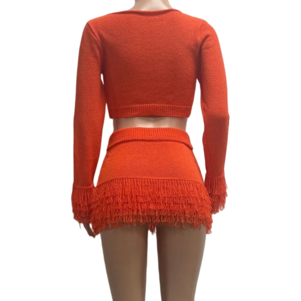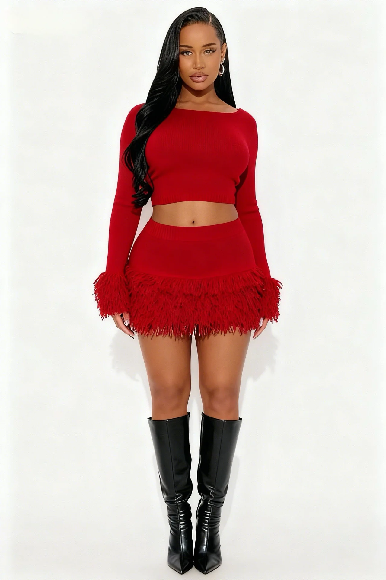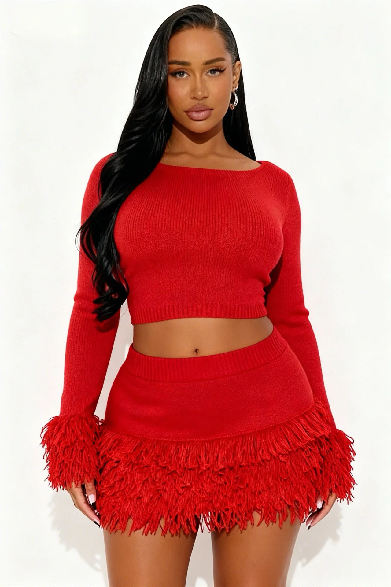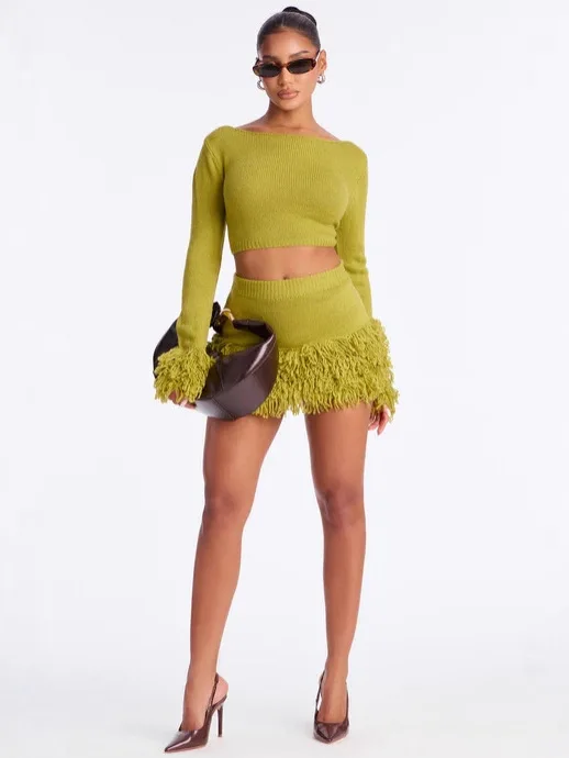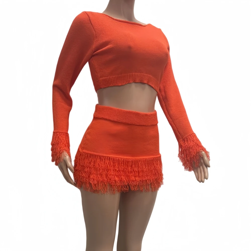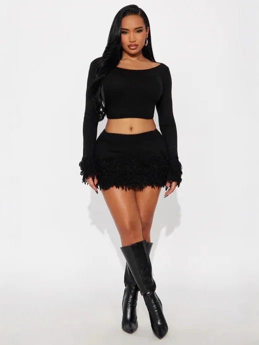Embrace winter with attitude in this two-piece tassel set. Textured details and layered silhouettes create dimension while the coordinated pairing ensures you're always match-ready. The tassel accents add movement and personality—subtle enough for everyday wear, bold enough to command attention. Layer over basics or wear as a statement on its own. Cozy never looked so daring.